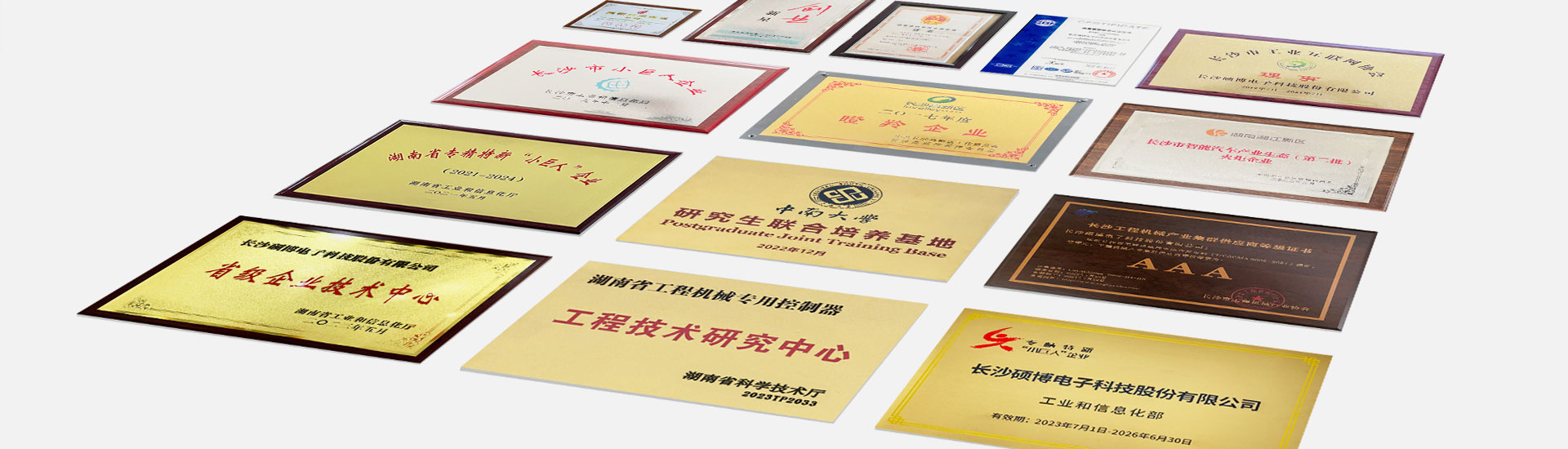 碩博電子致力于發(fā)展與創(chuàng)新,不斷超越自我,先后榮獲“湖南省科學(xué)技術(shù)進(jìn)步獎(jiǎng)”、“長(zhǎng)沙市創(chuàng)業(yè)新星”、“第四屆中國(guó)創(chuàng)新創(chuàng)業(yè)大賽優(yōu)秀企業(yè)獎(jiǎng)”、“長(zhǎng)沙高新區(qū)2017年度瞪羚企業(yè)”、“湖南省質(zhì)量標(biāo)桿企業(yè)”、“湖南省綠色工廠”等榮譽(yù),先后獲批“湖南省省級(jí)企業(yè)技術(shù)中心”、“國(guó)家專(zhuān)精特新小巨人企業(yè)”、“湖南省工程機(jī)械專(zhuān)用控制器工程技術(shù)研究中心”、“長(zhǎng)沙市企業(yè)技術(shù)中心”、“長(zhǎng)沙市技術(shù)創(chuàng)新中心”、“高級(jí)工程師工作室”等。